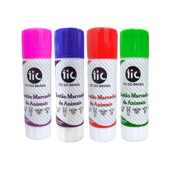 O Bastão Marcador da ITC do Brasil é um bastão de identificação com base óleo em formato semelhante a um batom de cera (57 g), desenvolvido especialmente para uso temporário em bovinos, suínos, ovinos e ovinos. Permite marcação rápida e visível em pelagem, ideal para separar lotes, identificar animais com mais eficiência no manejo diário do campo.
