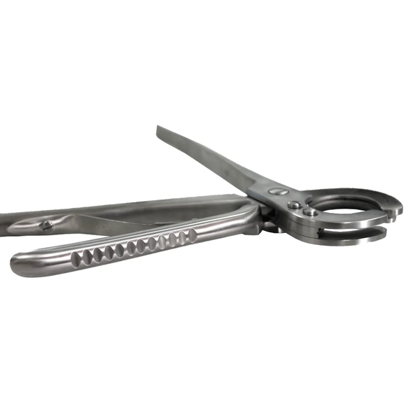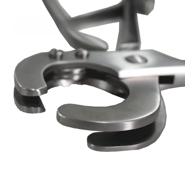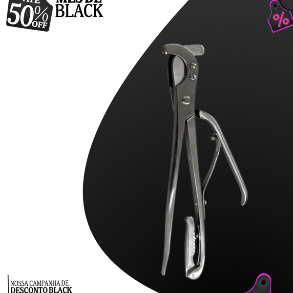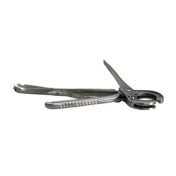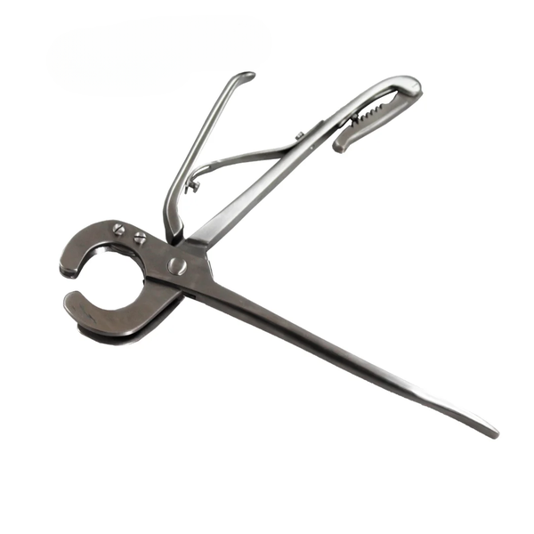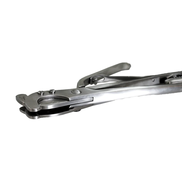 Instrumento cirúrgico robusto em aço inox para castração de grandes animais. O Emasculador Reimers oferece três funções: estrangulamento, esmagamento e corte, em sequência controlada com trava de segurança. Comprimento de 33 cm para manejo preciso de bovinos, equinos e bovinos adultos.