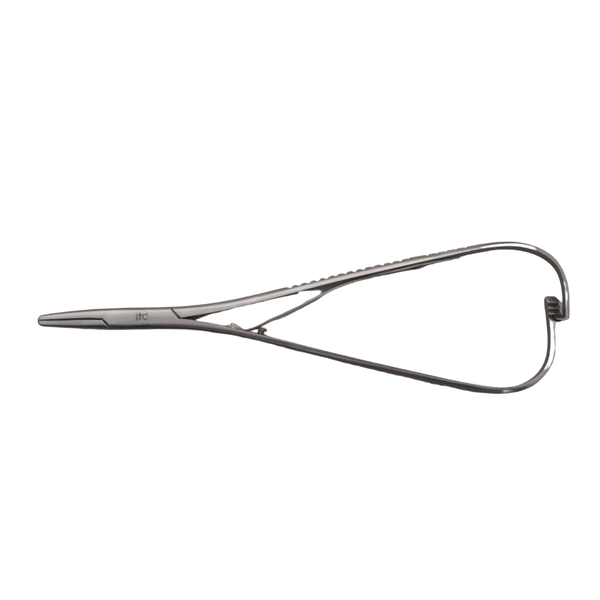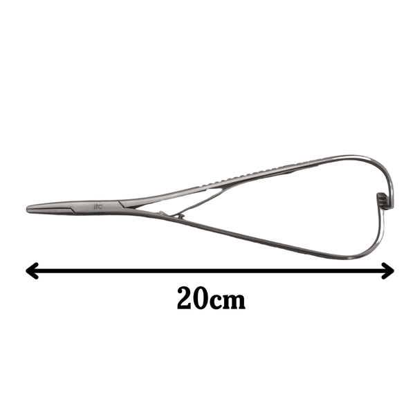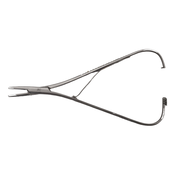 Ferramenta cirúrgica especializada para sutura, projetada com manuseio ágil e precisão. Ideal para procedimentos veterinários que exigem firmeza e controle da agulha.