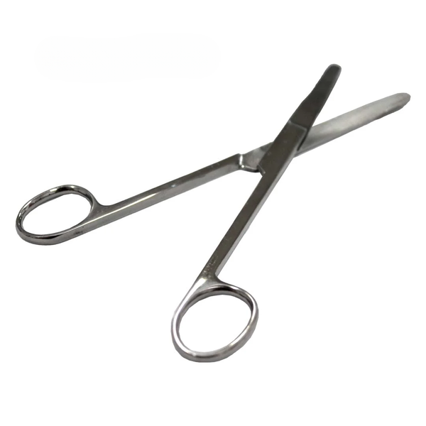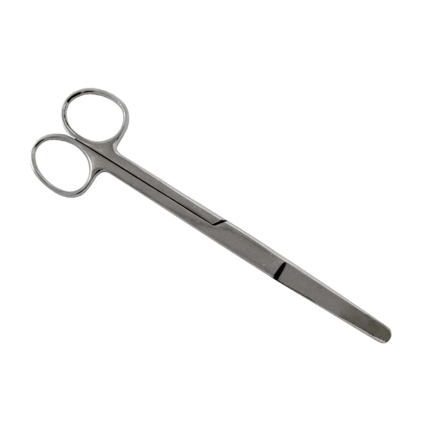 Tesoura de aço inox com lâminas curvas e pontas rombas, ideal para separar camadas de tecidos internos com segurança e controle. Tamanho 17 cm.